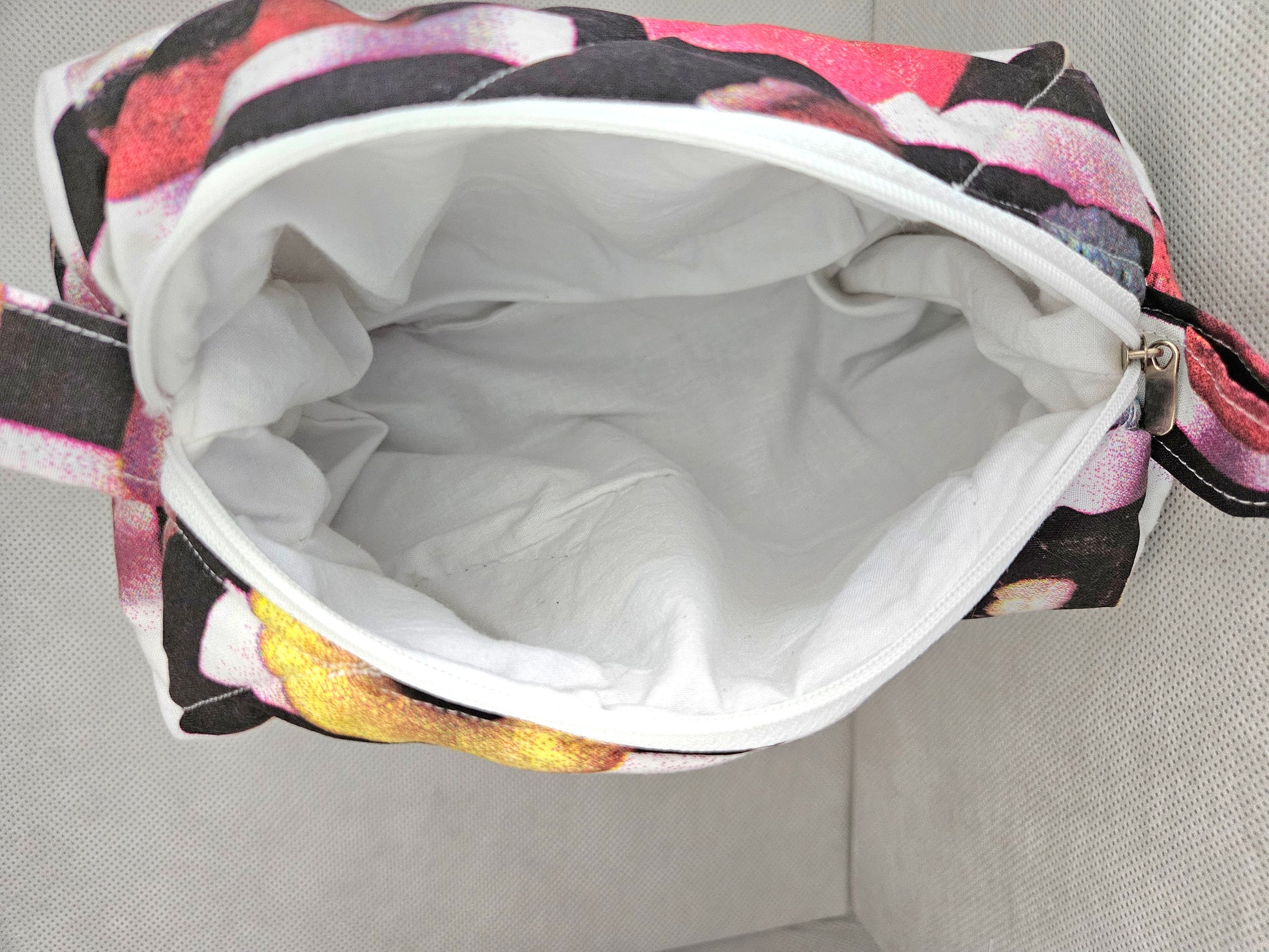 Crafted for durability, the bag is suitable for everyday use, with a spacious padded interior that allows safe storage for all your beauty essentials. Its unique patterns give it a fun and artsy vibe, making it not only a practical accessory but also a statement piece. Whether at home or on the go, this makeup bag adds a splash of personality to your beauty routine.