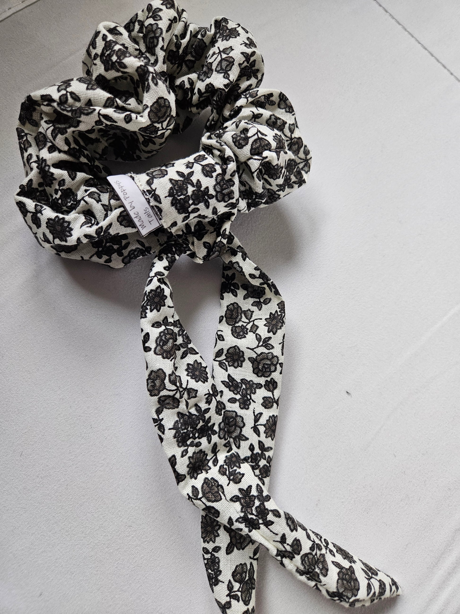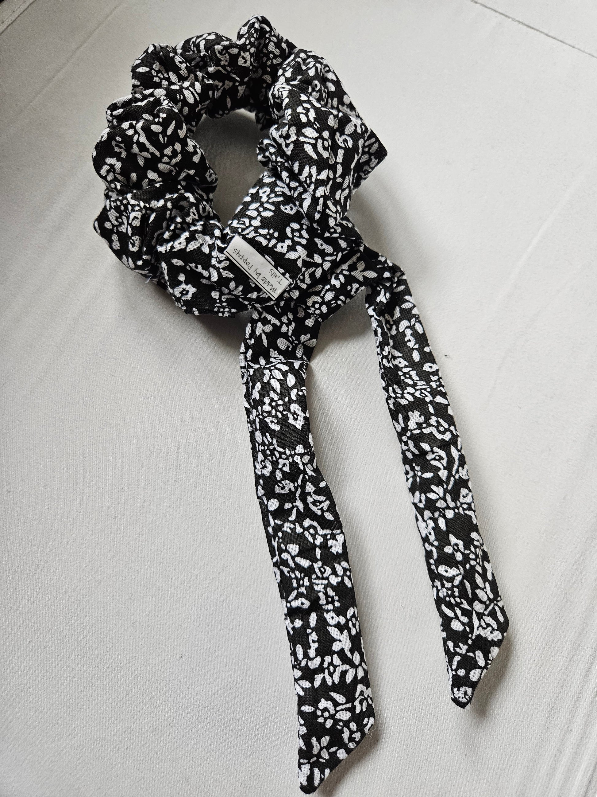 This handmade 100% cotton black and white print scrunchie is a versatile accessory perfect for various occasions. Made in the United Kingdom, the scrunchie is suitable for all hair types and features a classic multicoloured design. Ideal for travel, activewear, casual, workwear, and business settings, this scrunchie is a stylish and practical addition to any outfit.