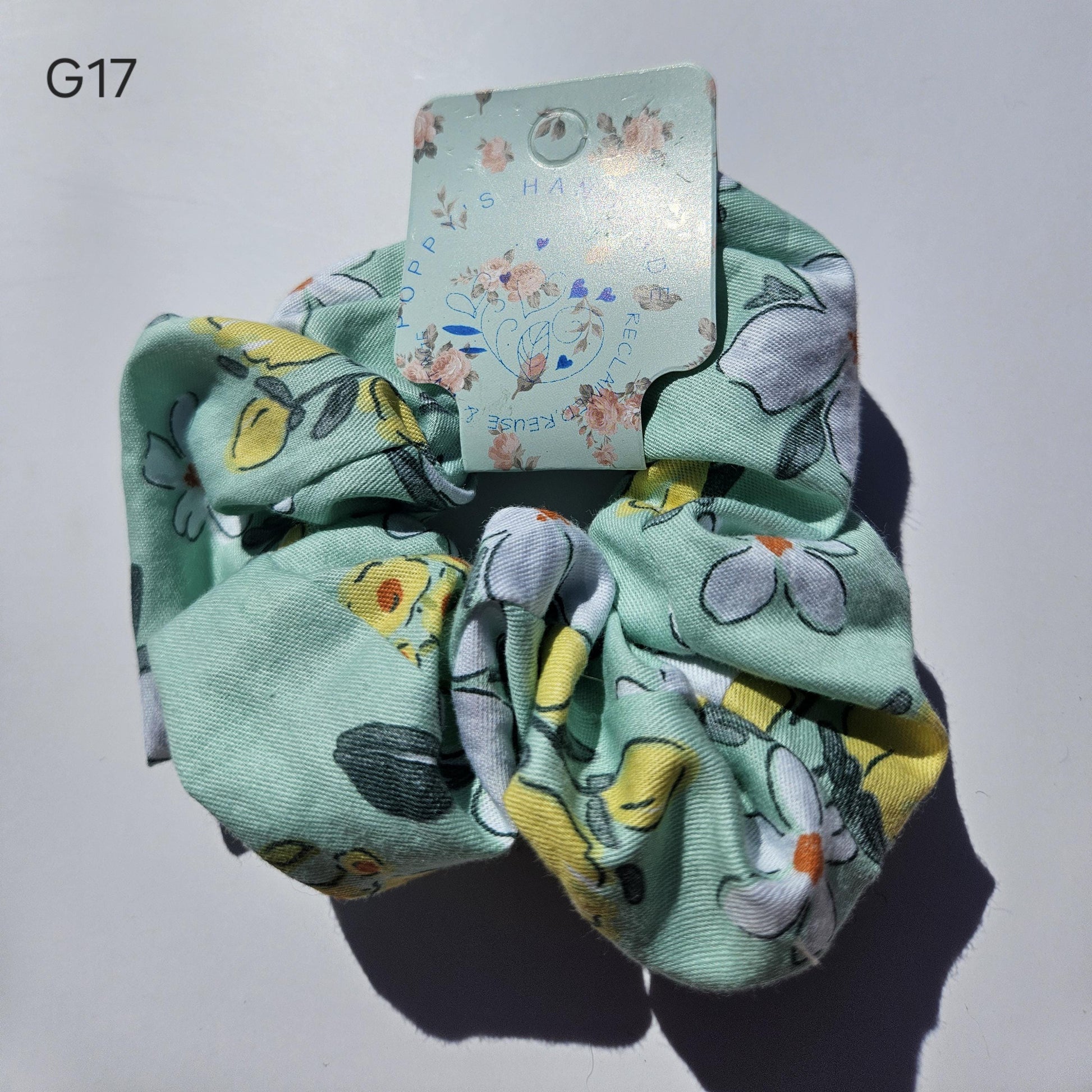 This handmade 100% cotton green and cream print scrunchie is a versatile accessory perfect for various occasions. Made in the United Kingdom, the scrunchie is suitable for all hair types and features a classic multicoloured design. Ideal for travel, activewear, casual, workwear, and business settings, this scrunchie is a stylish and practical addition to any outfit.