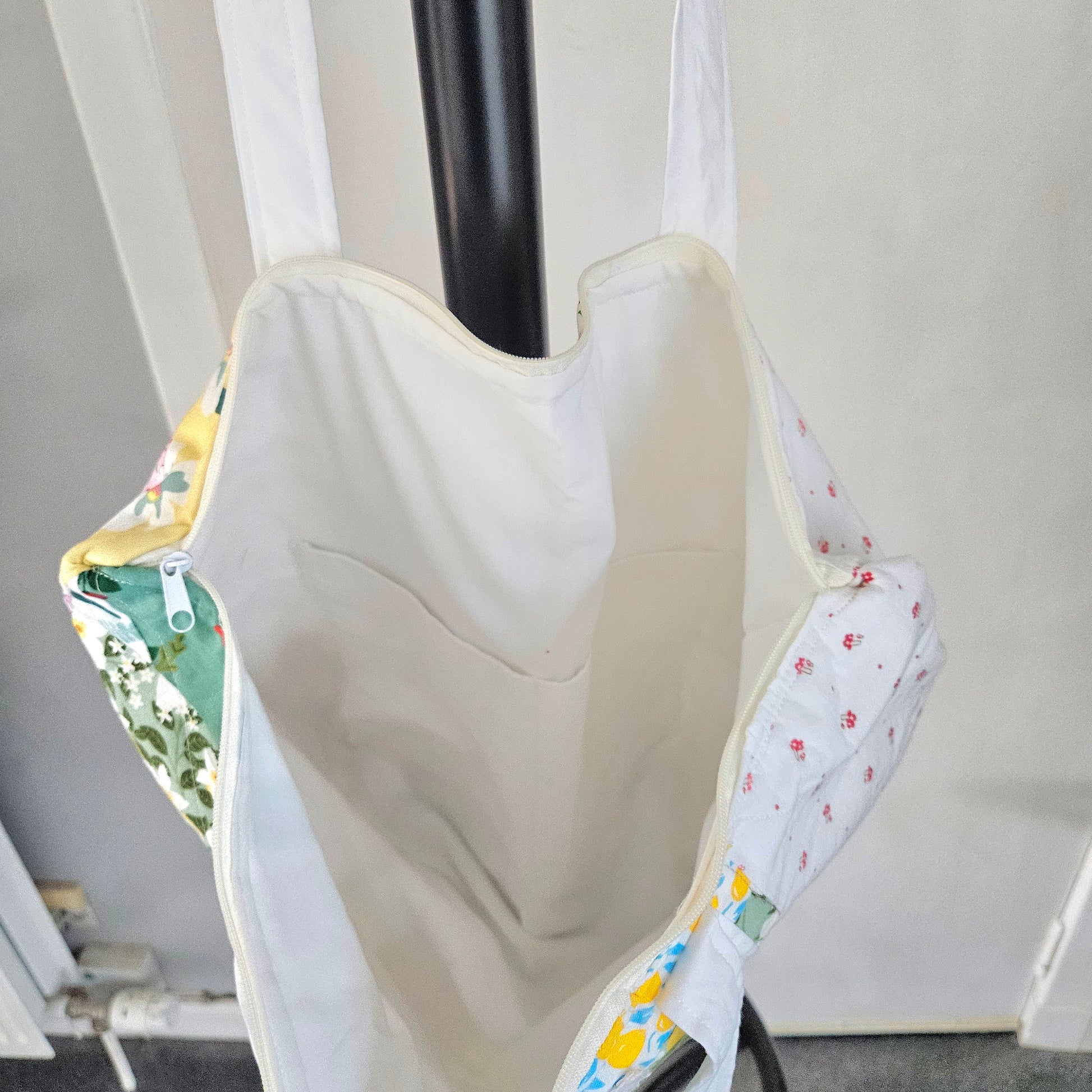 This handmade patchwork tote bag combines durability with unique style, perfect for everyday shopping. Crafted with care, its spacious interior accommodates all your essentials, while the patchwork design adds a distinctive, artisanal touch. Ideal for those seeking a practical yet fashionable accessory that stands out in any crowd.