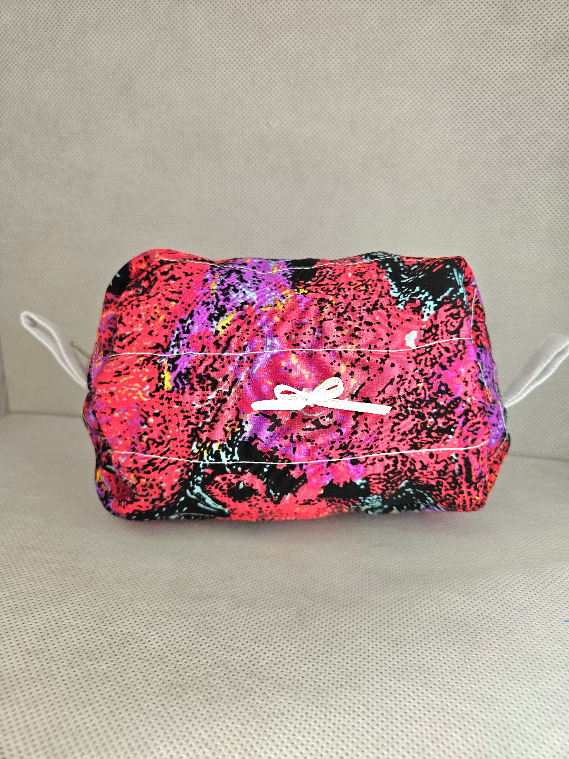 This red and purple patterned makeup bag combines vibrant colors with practical design to keep your cosmetics organized. Its sturdy construction ensures durability, while the spacious interior offers ample room for all your essentials. Perfect for travel or daily use, it helps protect your products and simplifies your beauty routine with style and efficiency.