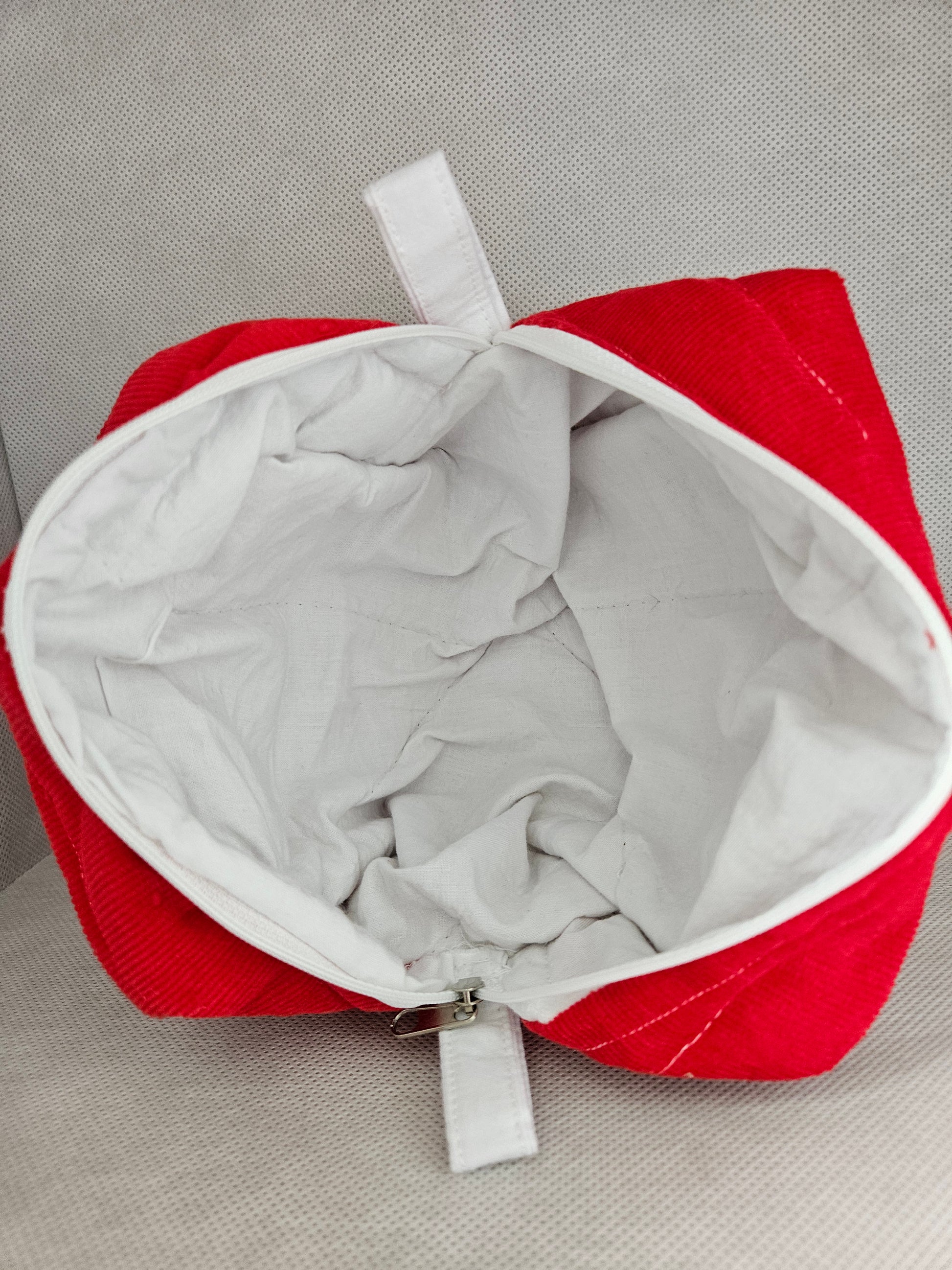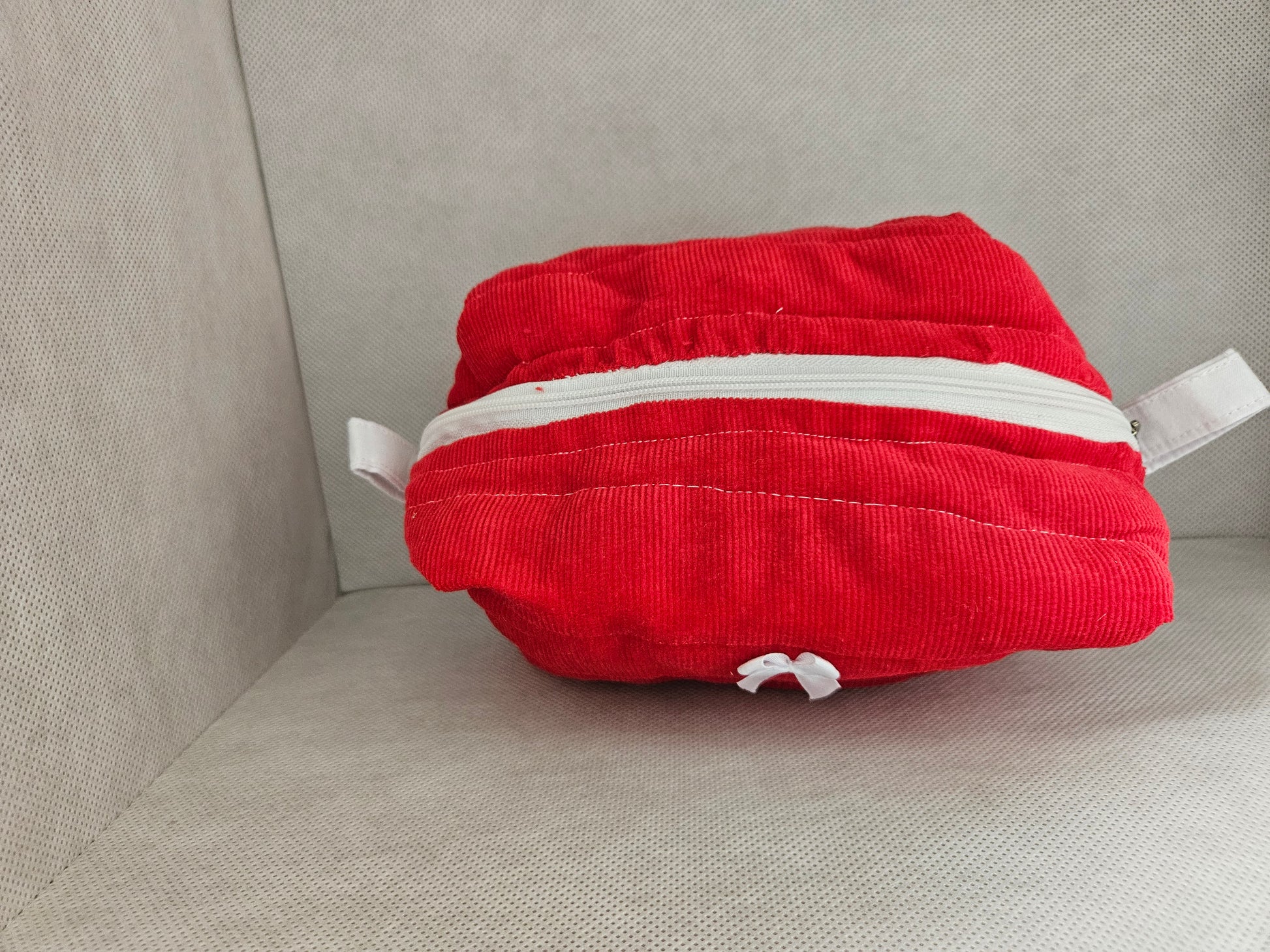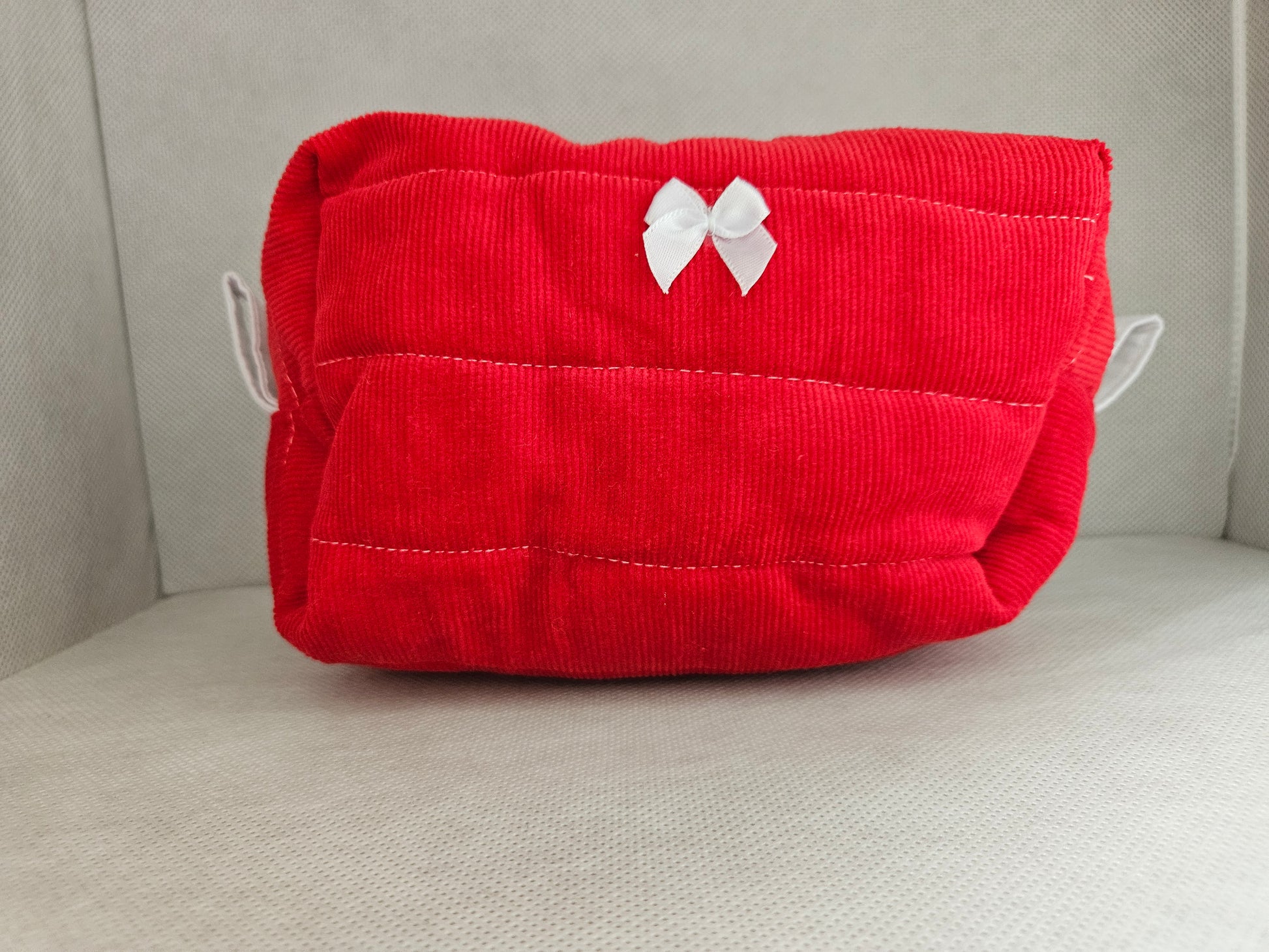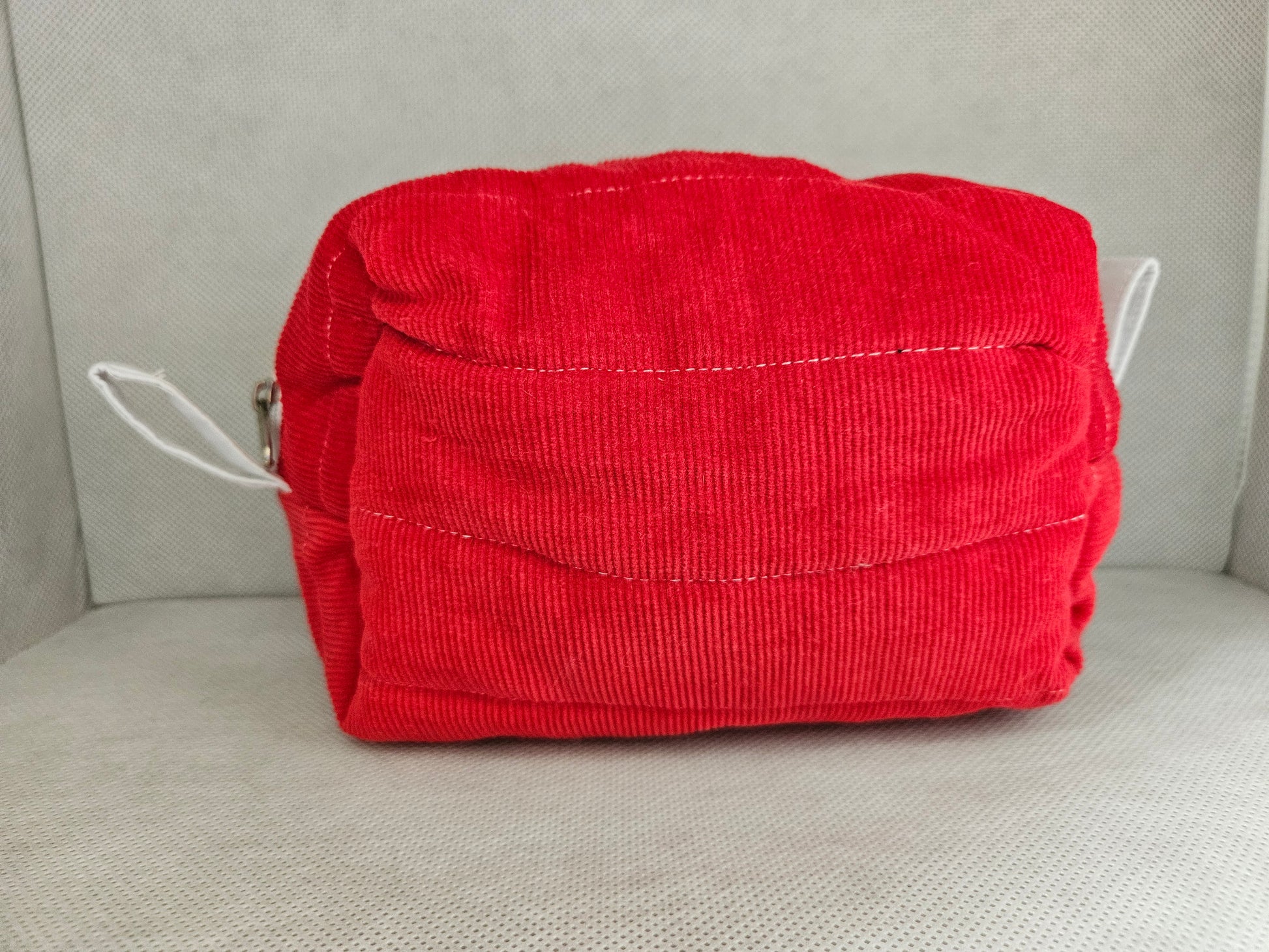 The Salazar makeup bag combines expert design with practical features. Its vivid red exterior is complemented by a fully lined, white padded interior that protects your cosmetics from bumps and spills. Compact yet spacious, it offers secure organization and durability for everyday use or travel.