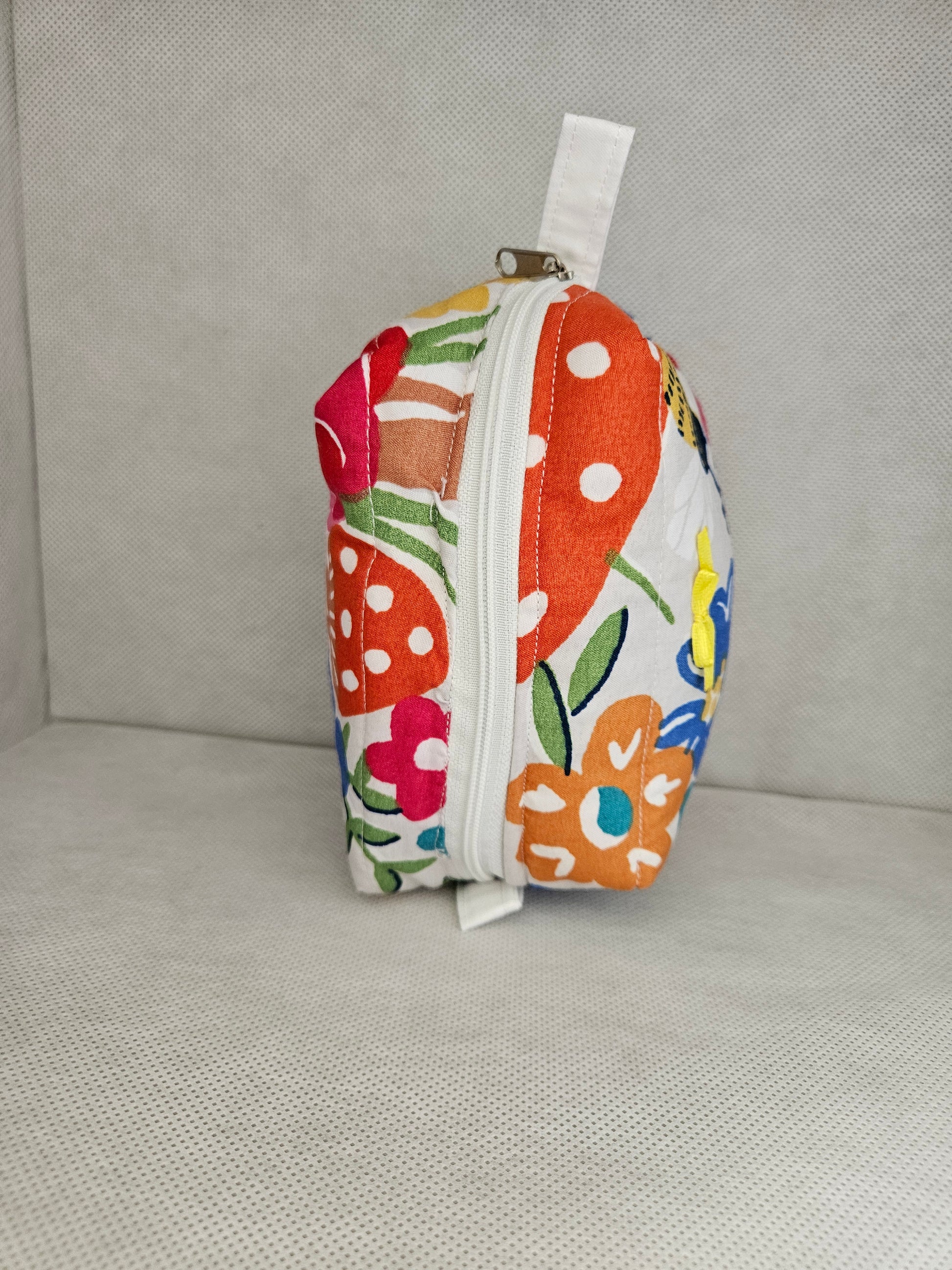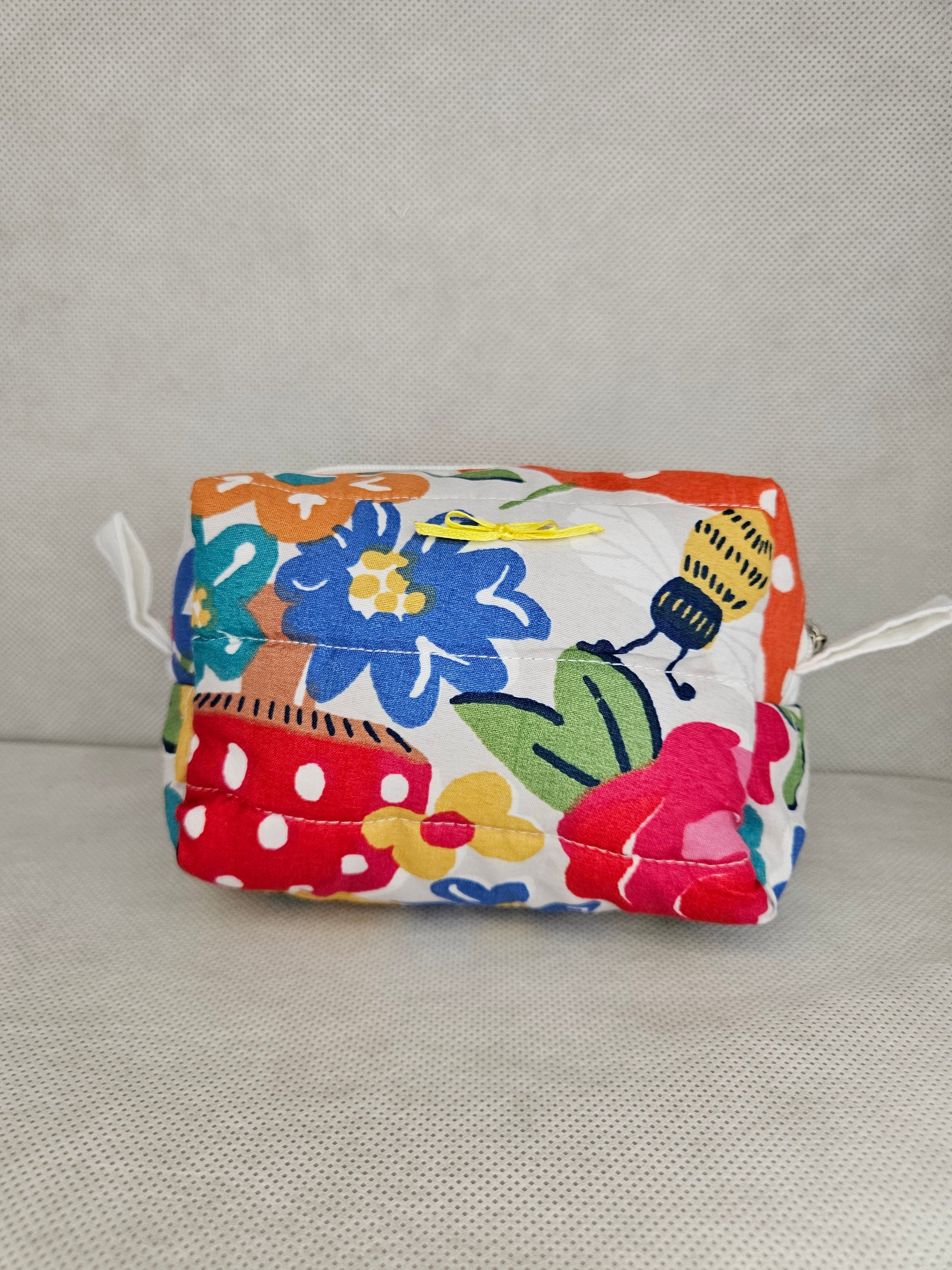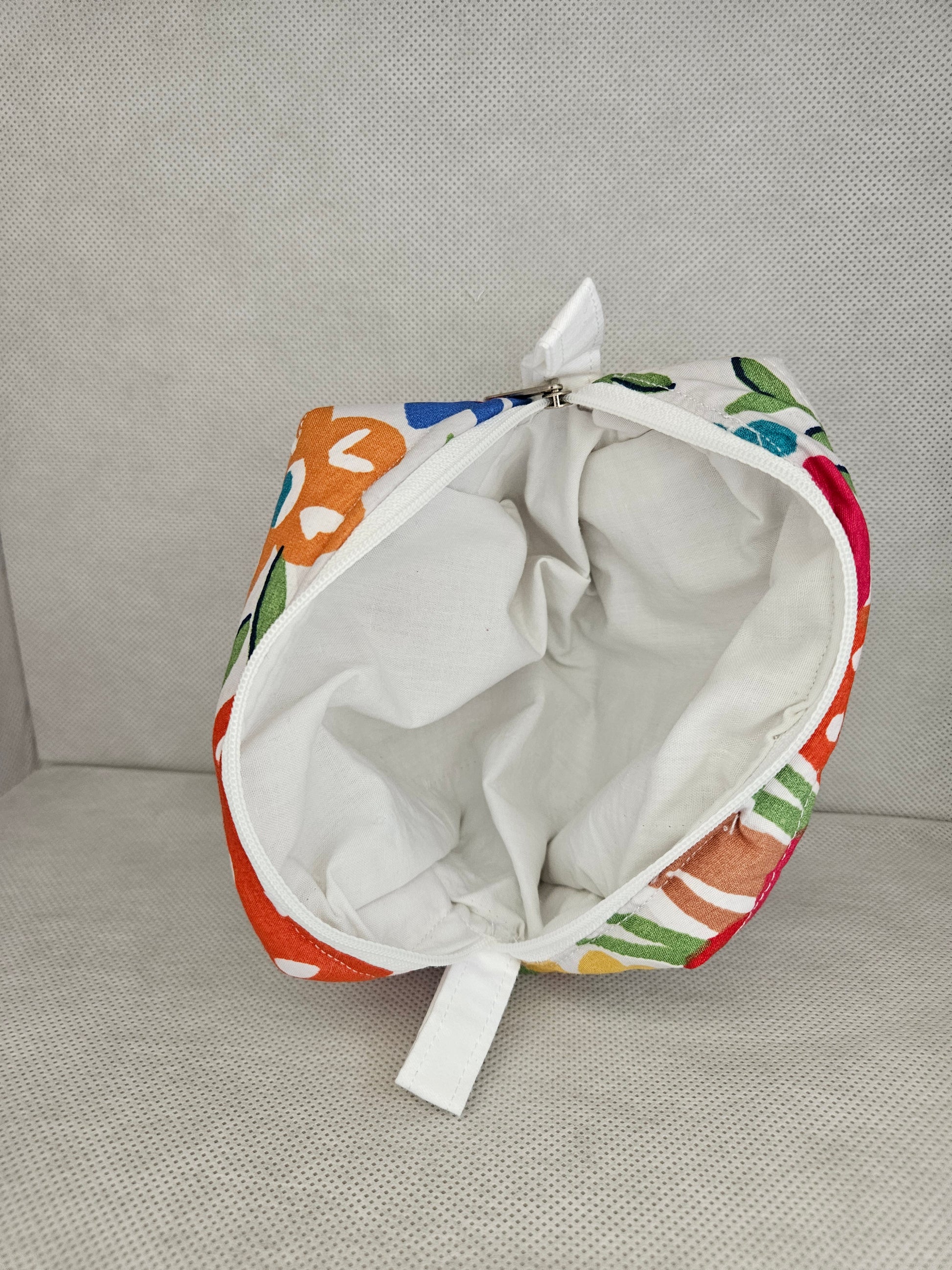 The Trelawney makeup bag offers a compact yet spacious design, measuring approximately 6" by 6". Crafted in pristine white and adorned with a bold, oversized flower motif, it blends style with practicality. Its size makes it ideal for organizing essential cosmetics or travel toiletries, ensuring your beauty must-haves are always within reach while adding a sophisticated touch to your routine.