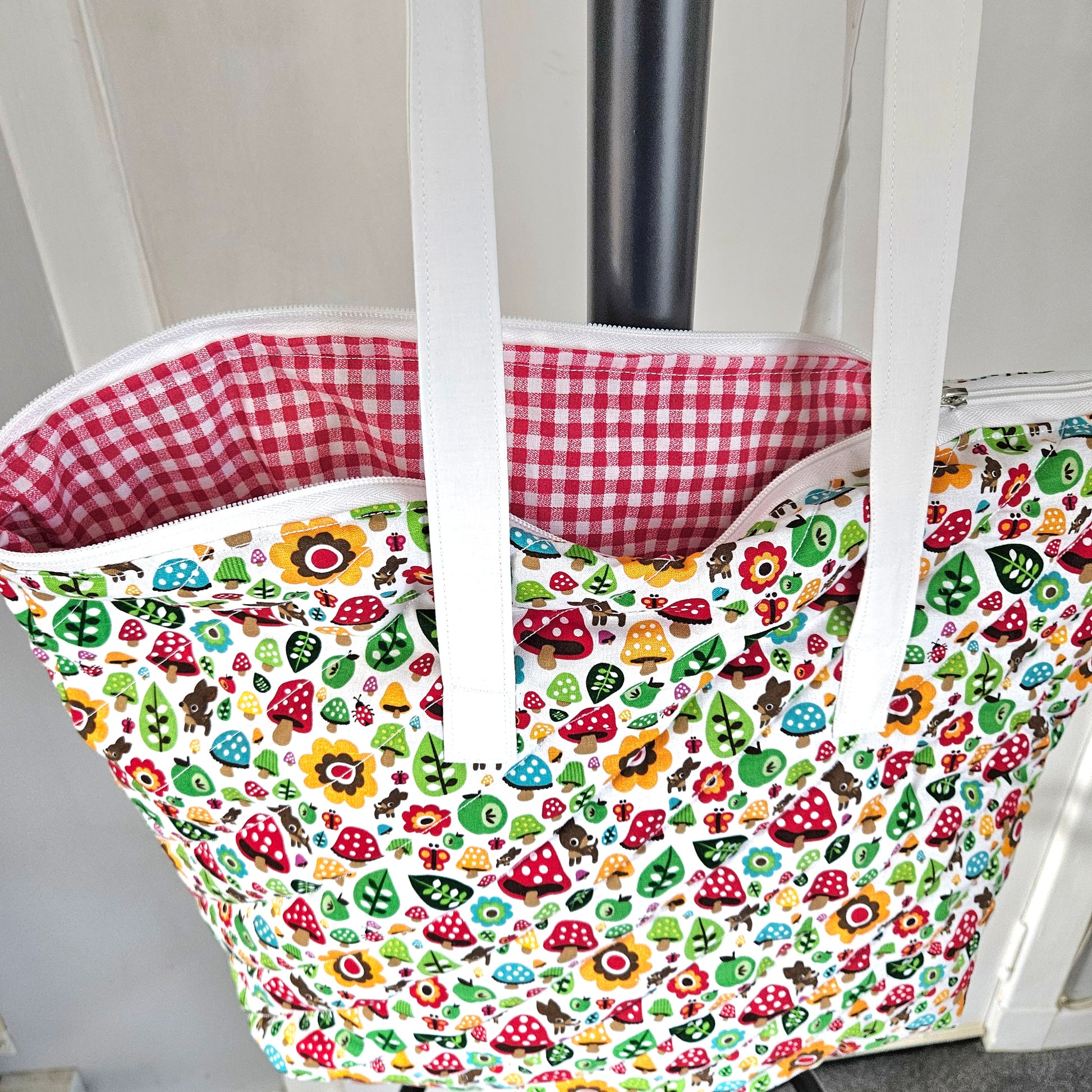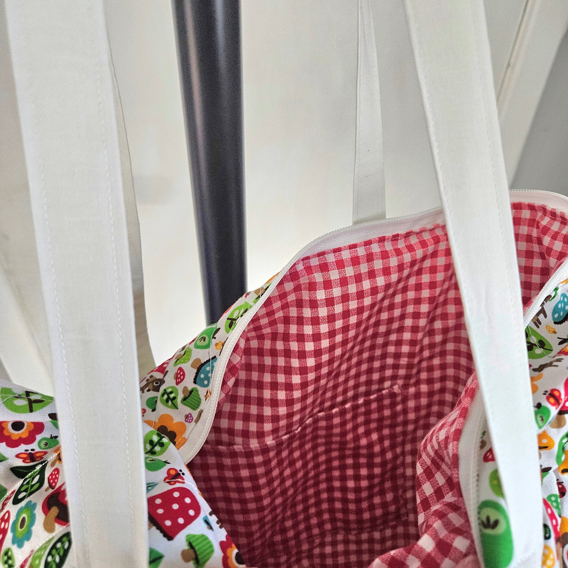 This tote bag combines a charming woodland exterior pattern with a classic checkered interior, offering both style and practicality. Its padded design ensures durability and protects your belongings, making it ideal for everyday use or outdoor excursions. Expertly crafted, it balances aesthetic appeal with functional comfort.